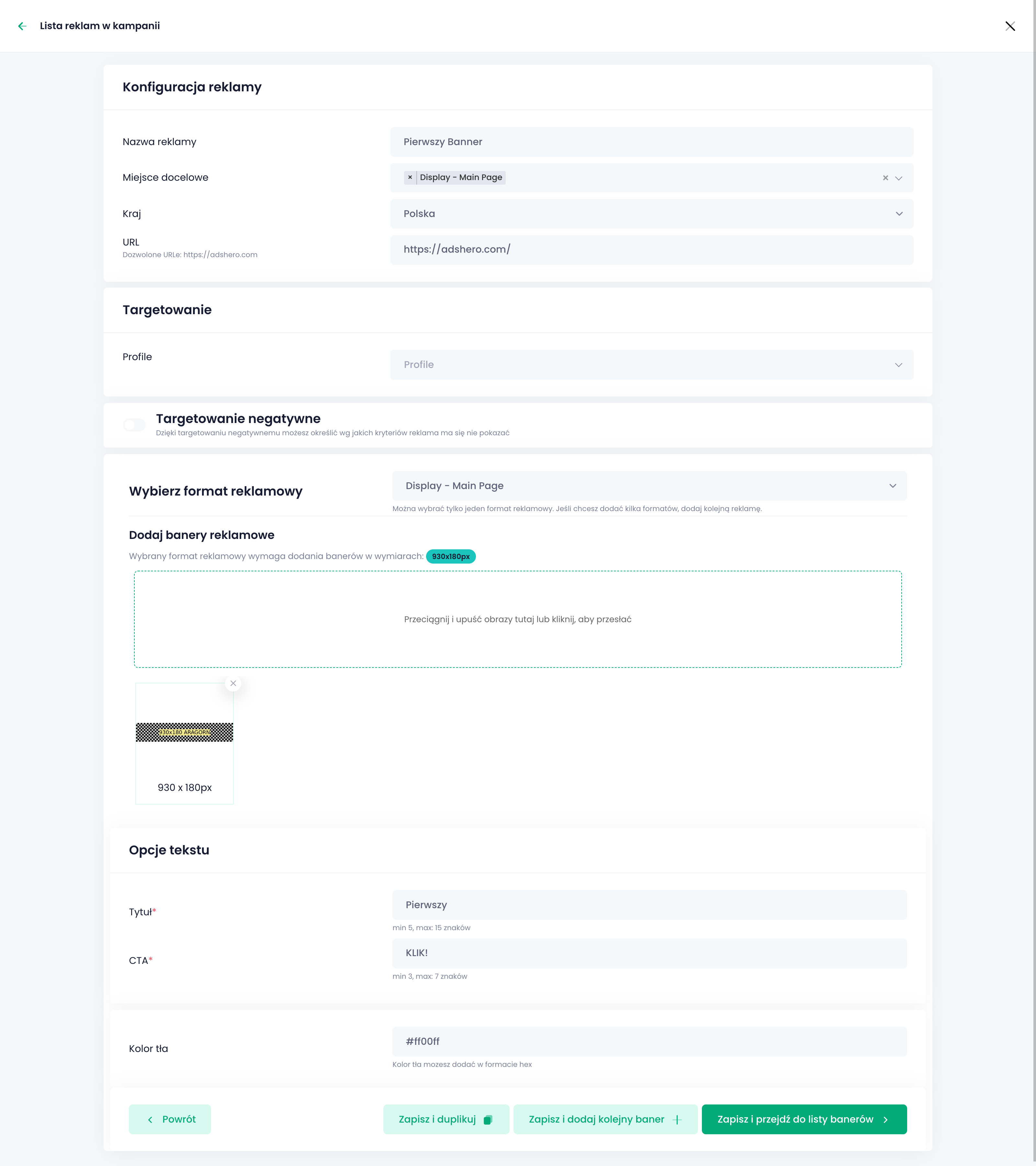 Po skonfigurowaniu reklamy klikamy “Zapisz i przejdź do listy bannerów”.