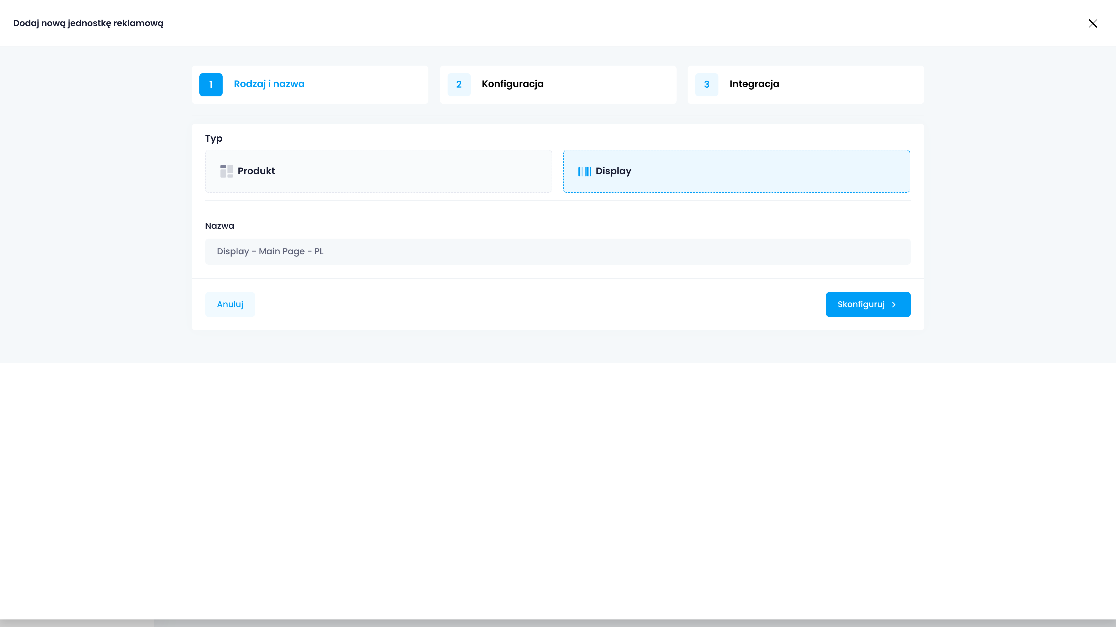 Konfiguracja reklamy