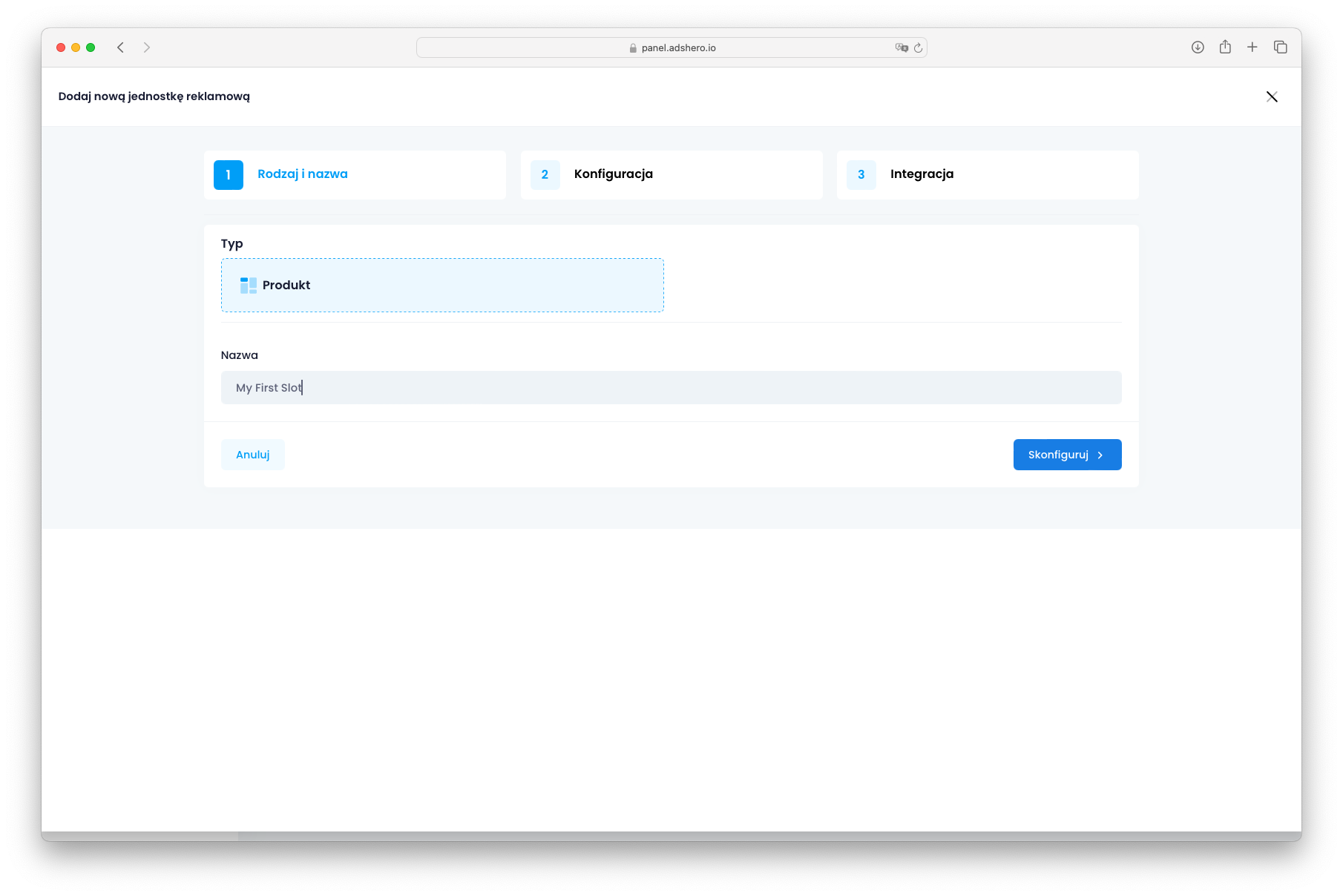 Następnie wybieramy “Dodaj nową jednostkę reklamową” i nadajemy nazwę dla nowej jednostki: