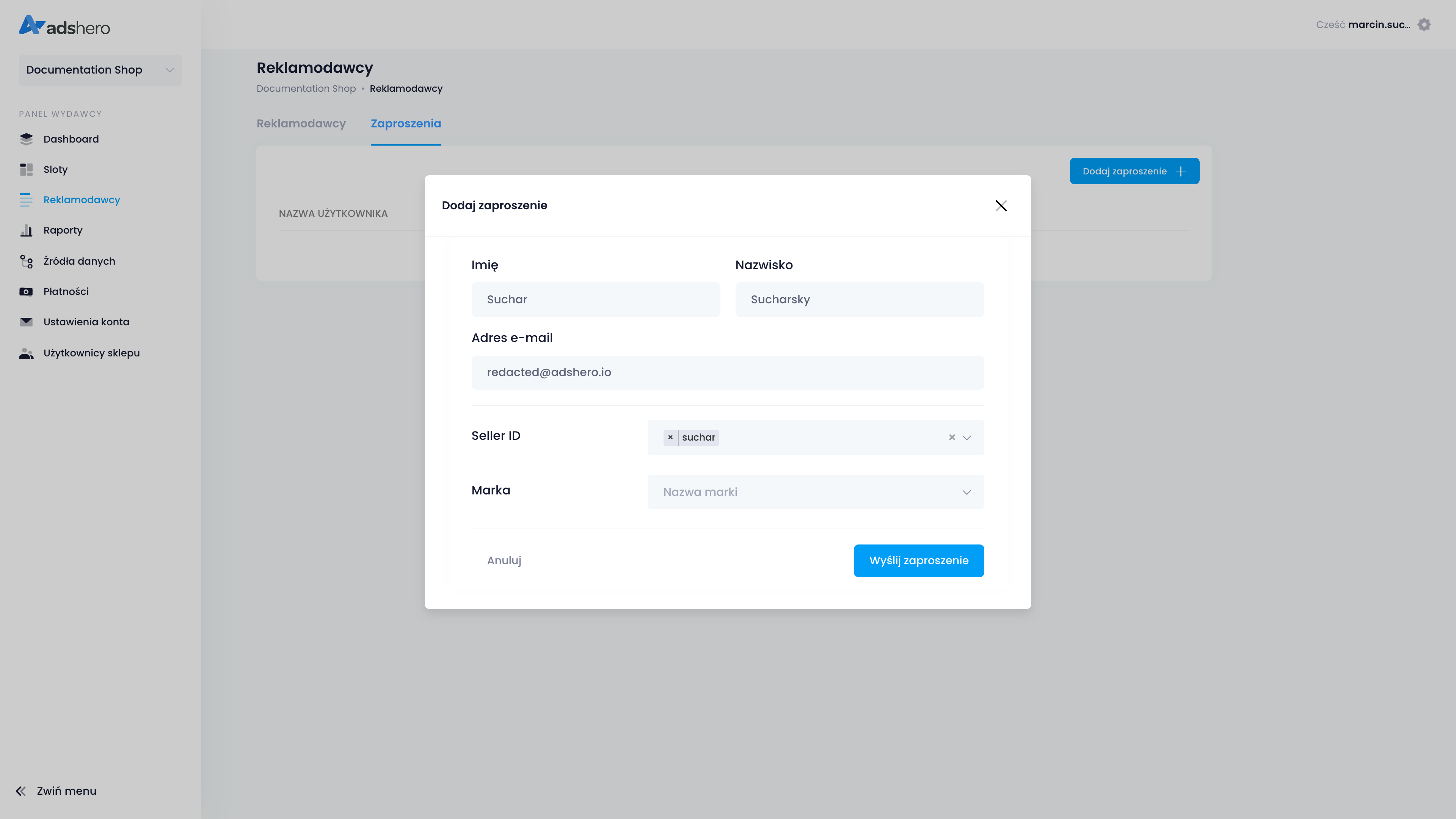 W ramach whitelabel AdsHero pozwala na udostępnienie panelu reklamodawcy w domenie sklepu i spójnie z jego stylistyką (logo i kolory). Typowym zastosowaniem są marketplace’y, gdzie wielu sprzedających spotyka się na jednej platformie: platforma udostępnia wtedy panel AdsHero w swojej domenie, a sprzedawcy mogą reklamować swoje produkty w ramach platformy.